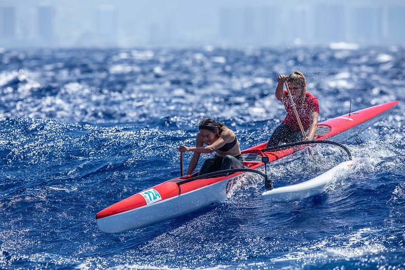 Our goals with the Gemini OC2 is comfort, performance, control and appearance. We feel we have accomplished our goals. In the flatwater she glides well and cuts through the headwind chop with ease. In open ocean the Gemini OC2 has a lively performance into the swell and maintains great glides running with the swells (bumps). The steering control allows you a lot of freedom with manuverability.