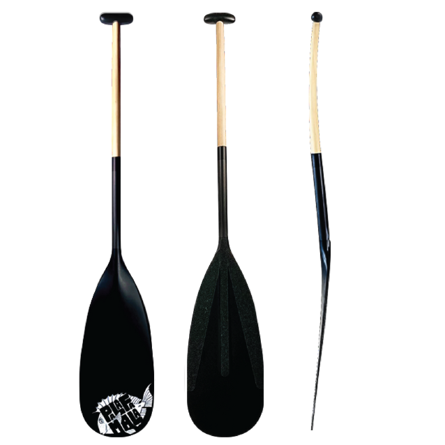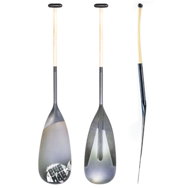 Double Bend: The double bend is a more modern steering blade design, set at 7 degrees. This allows the steersman to blend in better with their crew when paddling. The double bend also allows you to relax your bottom wrist and pull at a stronger angle. If you are used to paddling with a double bend, the double bend steering blade might be more comfortable for you, as you will feel like more of a paddler. This blade is good for bottom grabbers and one-handed pokers since it is easier to keep the blade flush to the hull by letting go of the T top.